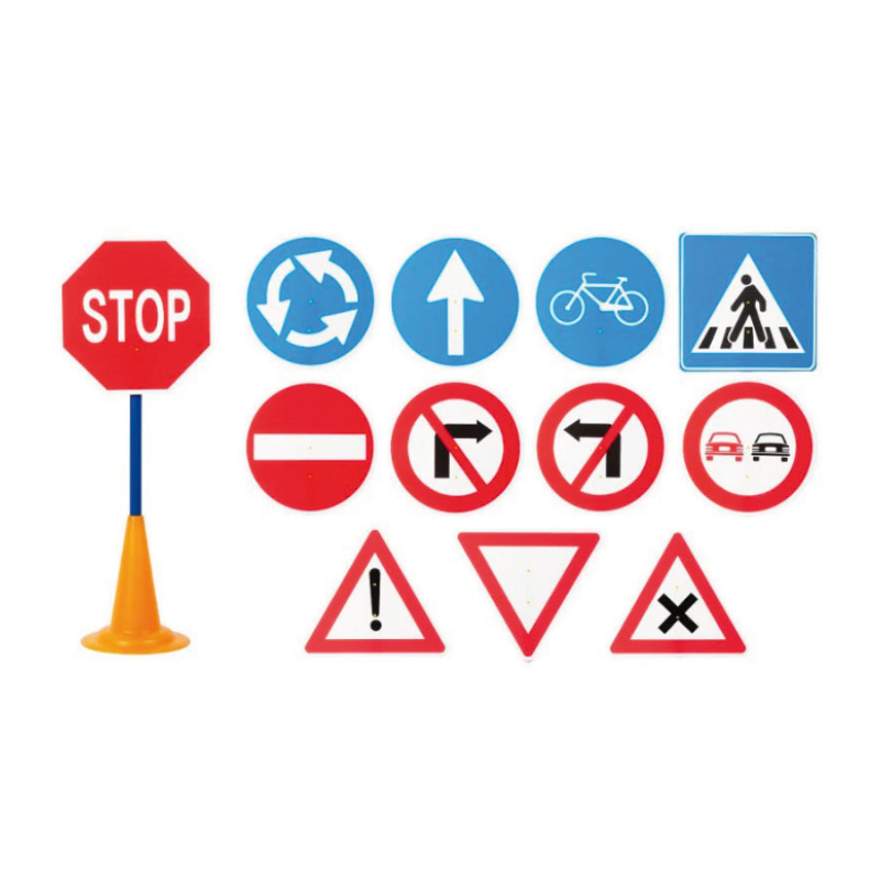 Inclui 12 sinais de trânsito com furo de fixação com 32 cm de